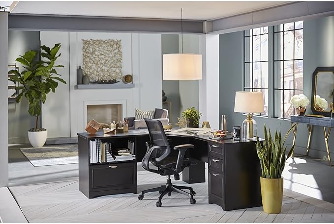 - Organize your workspace with this 71-inch Realspace Magellan Performance L-shaped desk. The 4 integrated drawers provide plenty of room for your file folders, office supplies and peripherals, while the cord management system keeps your space neat and tidy. This Realspace Magellan Performance L-shaped desk boasts a laminate surface for simple maintenance, and the printer tray pulls out effortlessly for easy access.